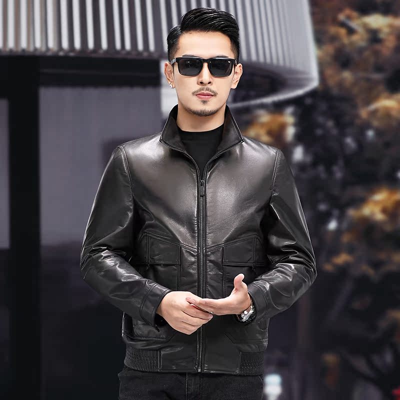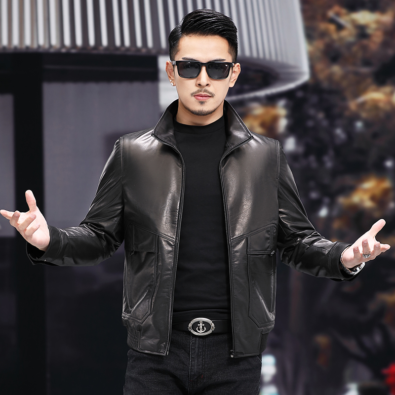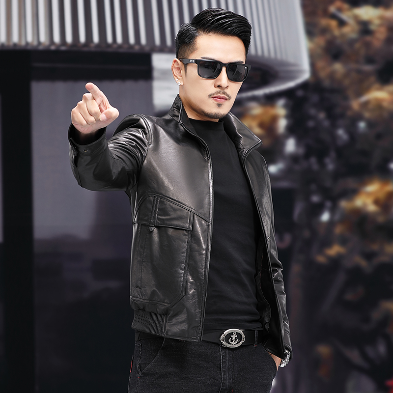 Genuine leather jacket men's new leather jacket head layer calf leather jacket short stand overturning collar Spring and autumn locomotive clothes trend