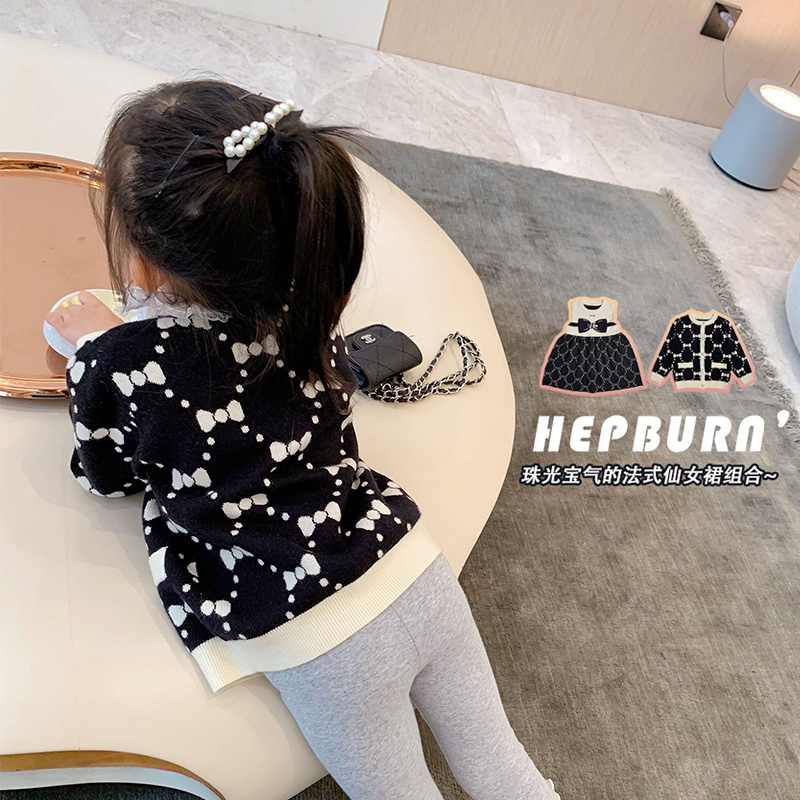 Girls Spring and Autumn Two Pieces College Fengyuan Set Dress Girls Baby Spring Knitted Outfit