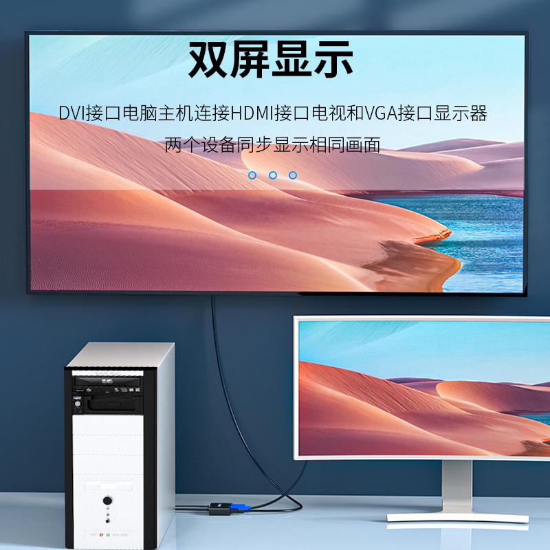 DVI one-to-two simultaneous display hdmi to vga converter with screen computer TV projector display
