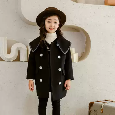 Girls cashmere woolen coat autumn winter dress Korean children's woolen coat 2021 New Baby foreign school children's clothing tide
