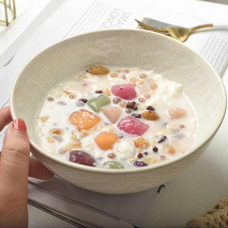Beauty Blue Ceramic Korea Ins Relief Bowl Brief Breakfast Oat Bowl Fruit Salad Bowl Student Bubbling Bowl Blemish