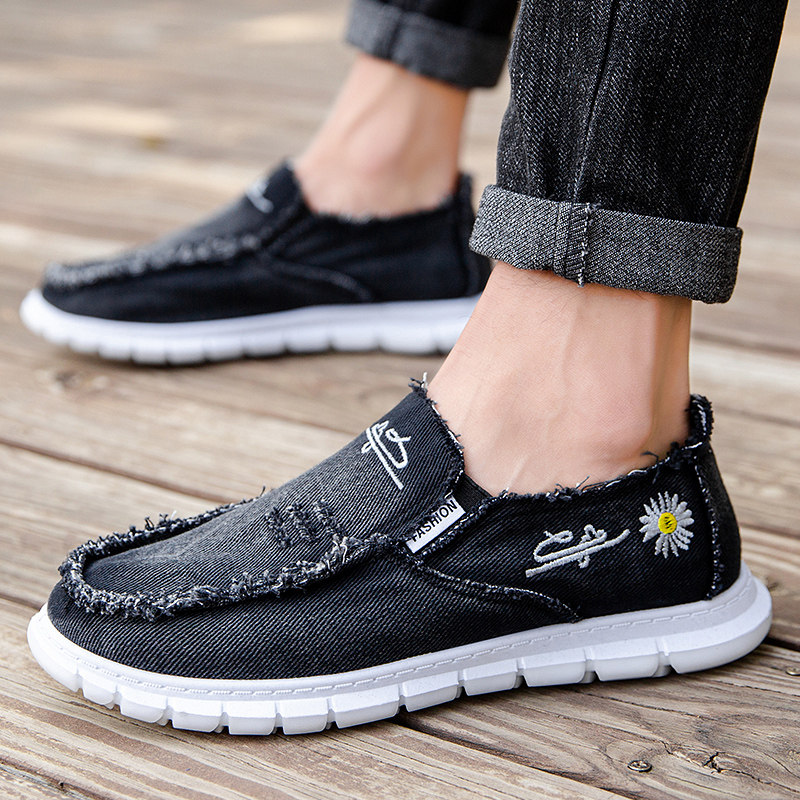 Datang embroidered god canvas shoes men's 2021 new spring men's shoes small daisy Chinese style one pedal old Beijing cloth shoes