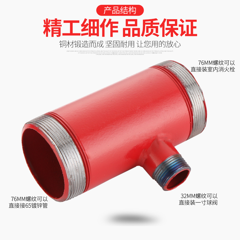2 and a half inch inner and outer wire tee DN65 fire galvanized water pipe connection inner and outer wire elbow fire hydrant fire tee