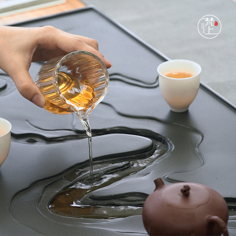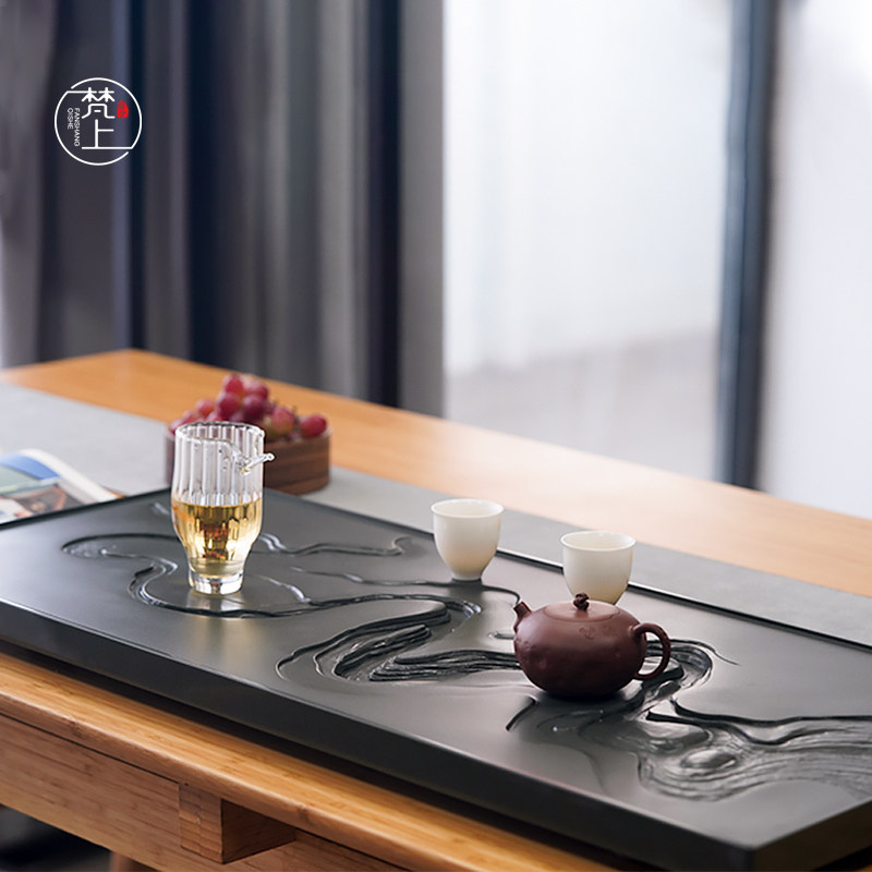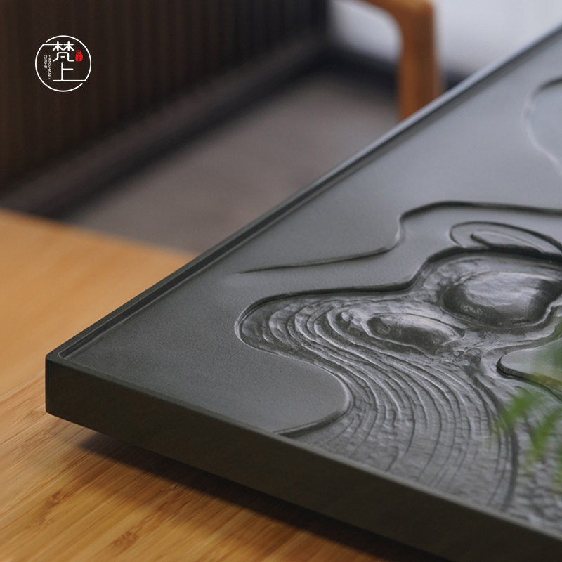 Fan Shangqishe master carved natural black gold stone tea tray stone plate relief home stone small tea table kung fu tea set