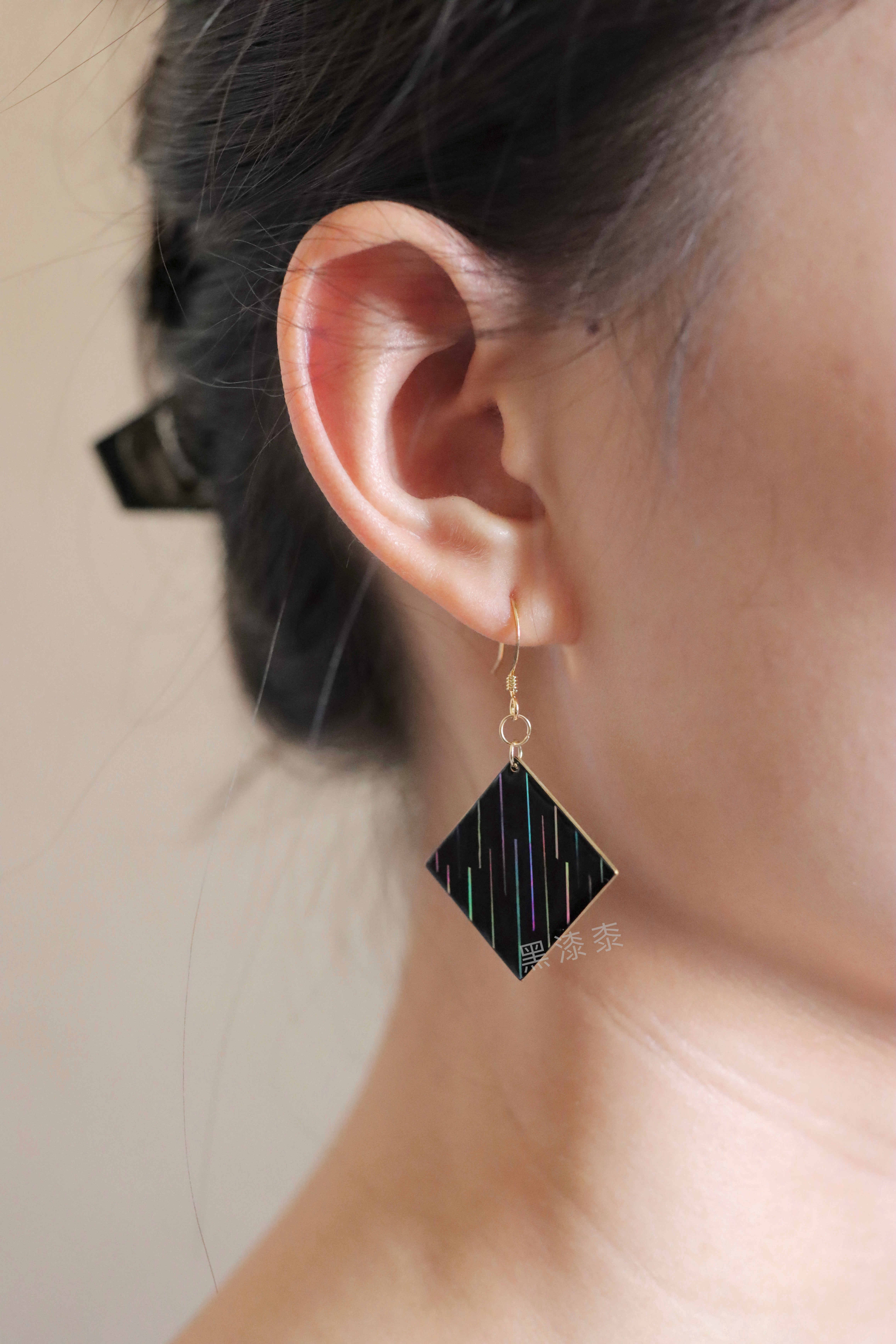 Black lacquer Artisanal Original Earrings Small Crowdtrend 100 Hitch Superior Sense Large Lacquer Spirotian Inlaid Craft Earrings Ornament