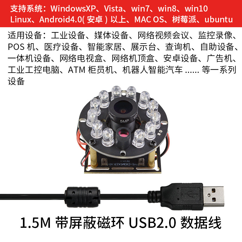 usb industrial module 1080P infrared switching low illumination HD 60 frames face recognition wind Android Raspberry Pi