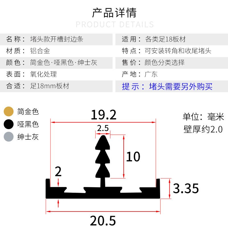 E18 wall thickness 2 0 Choke Plug aluminium alloy sealing edge Wardrobe Buttoning Strips Overall Cupboard Side Carbar Closure Corner Wrap side wall