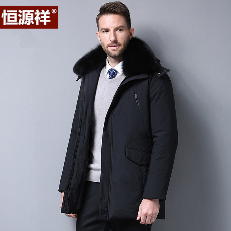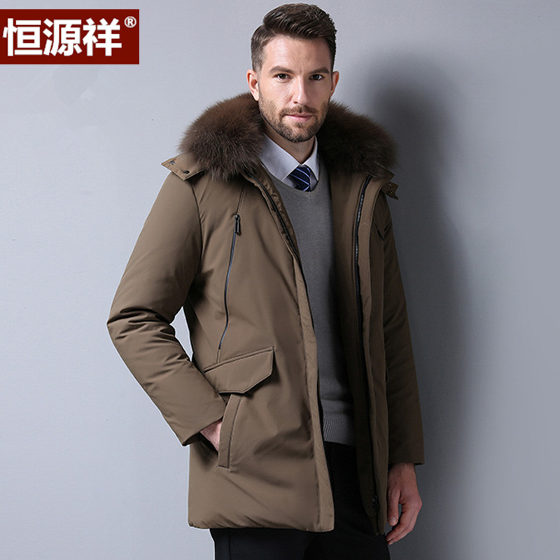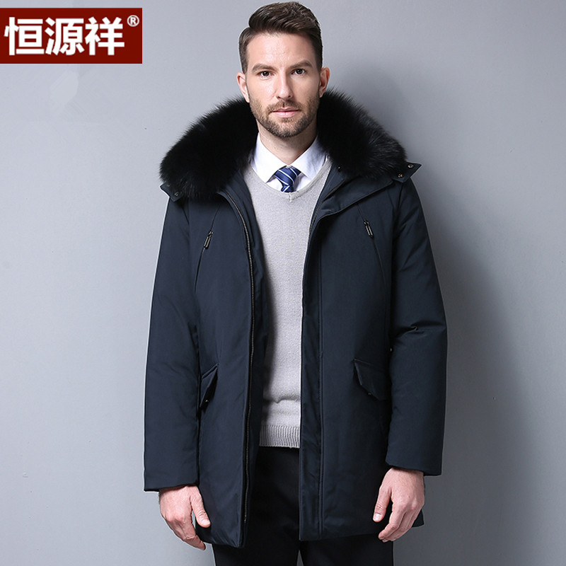 Hengyuanxiang middle-aged and elderly down jacket men's thickened mid-length cold-proof clothing middle-aged dad's winter clothes plus size jacket