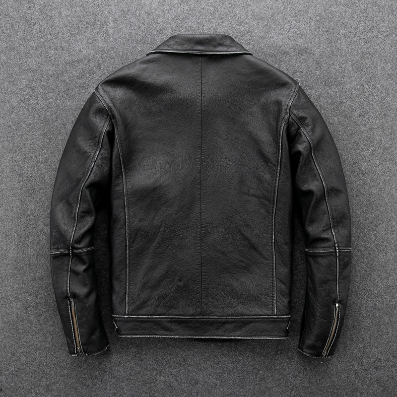 Imported cow leather leather leather clothing male heavy machine race car suit bicolor tea core grinding edge doing old riding to the head layer of cow leather upturned