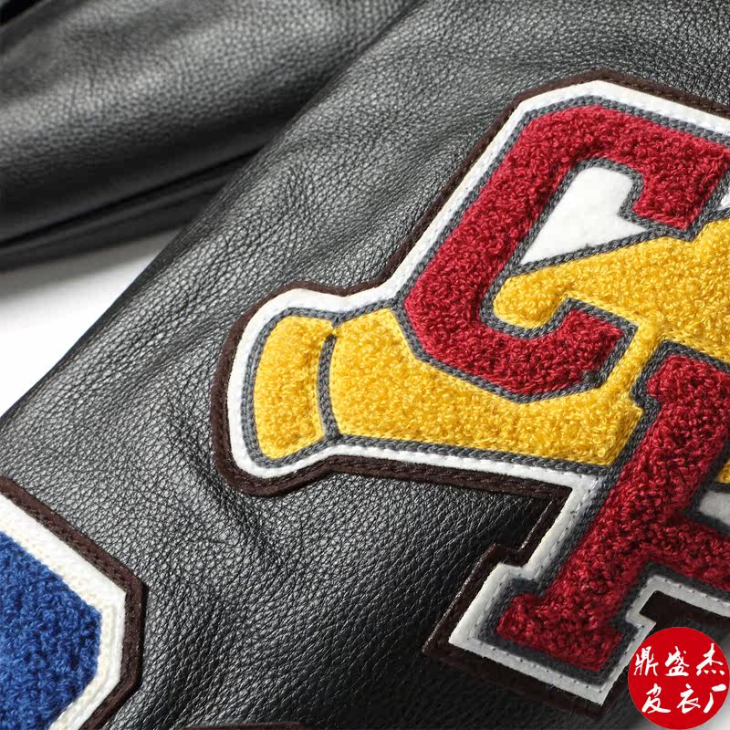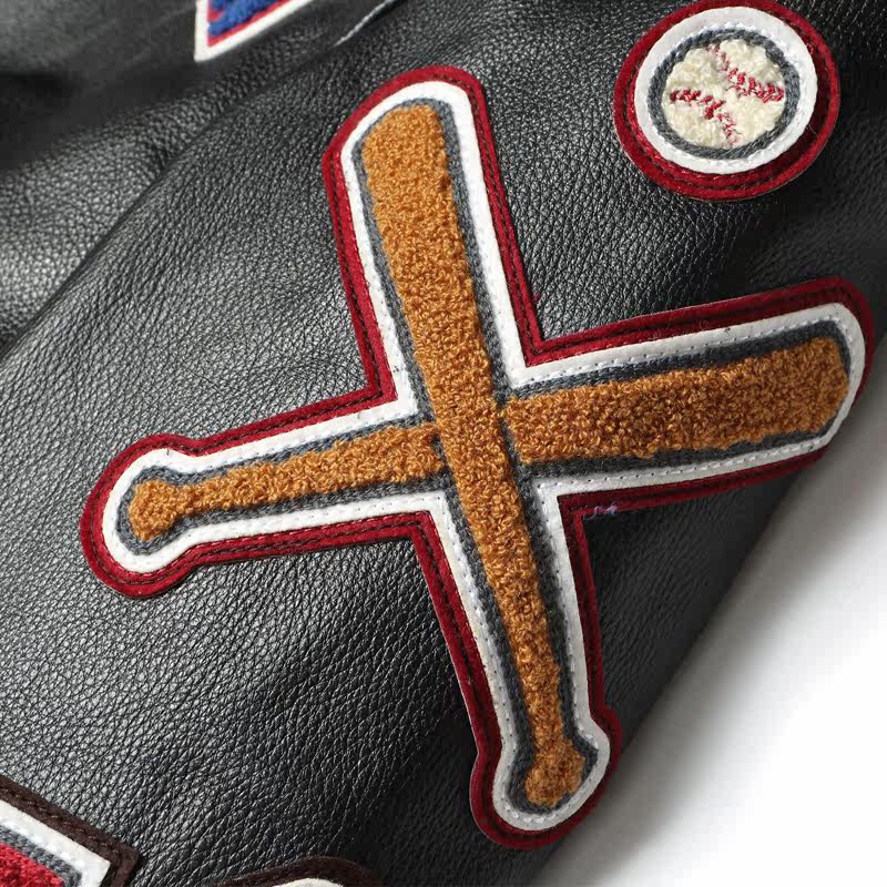 New Import Head Layer Calf Leather Leather Clothing Male Embroidery Multiscale Baseball Suit Leather Jacket Large Size Yard Locomotive Youth Jacket
