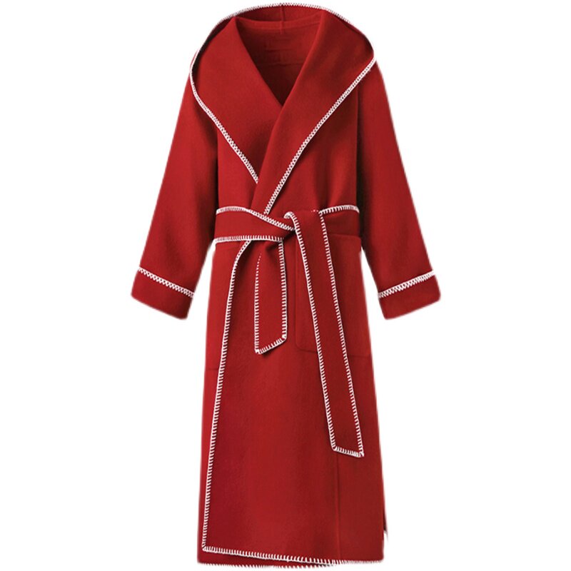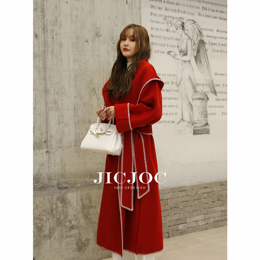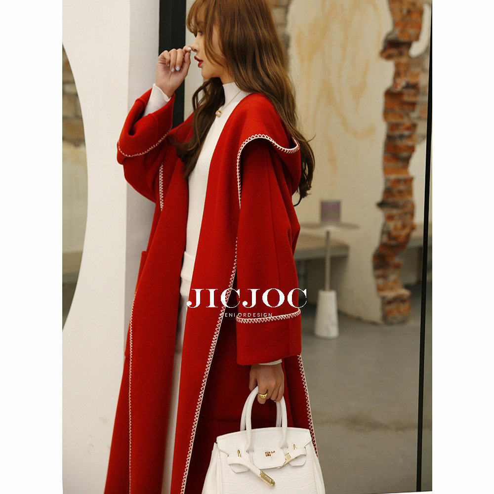 Red coat for women shells embroidered with hat double-sided cashmere for long version of cashew high end fur wool 2022 jacket