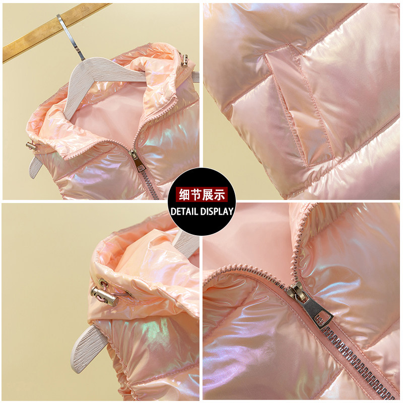 Children's down cotton waistcoat 2021 new Korean version of the Korean version of the girl CUHK Thickened Warm Vest Kan Shoulder bright face