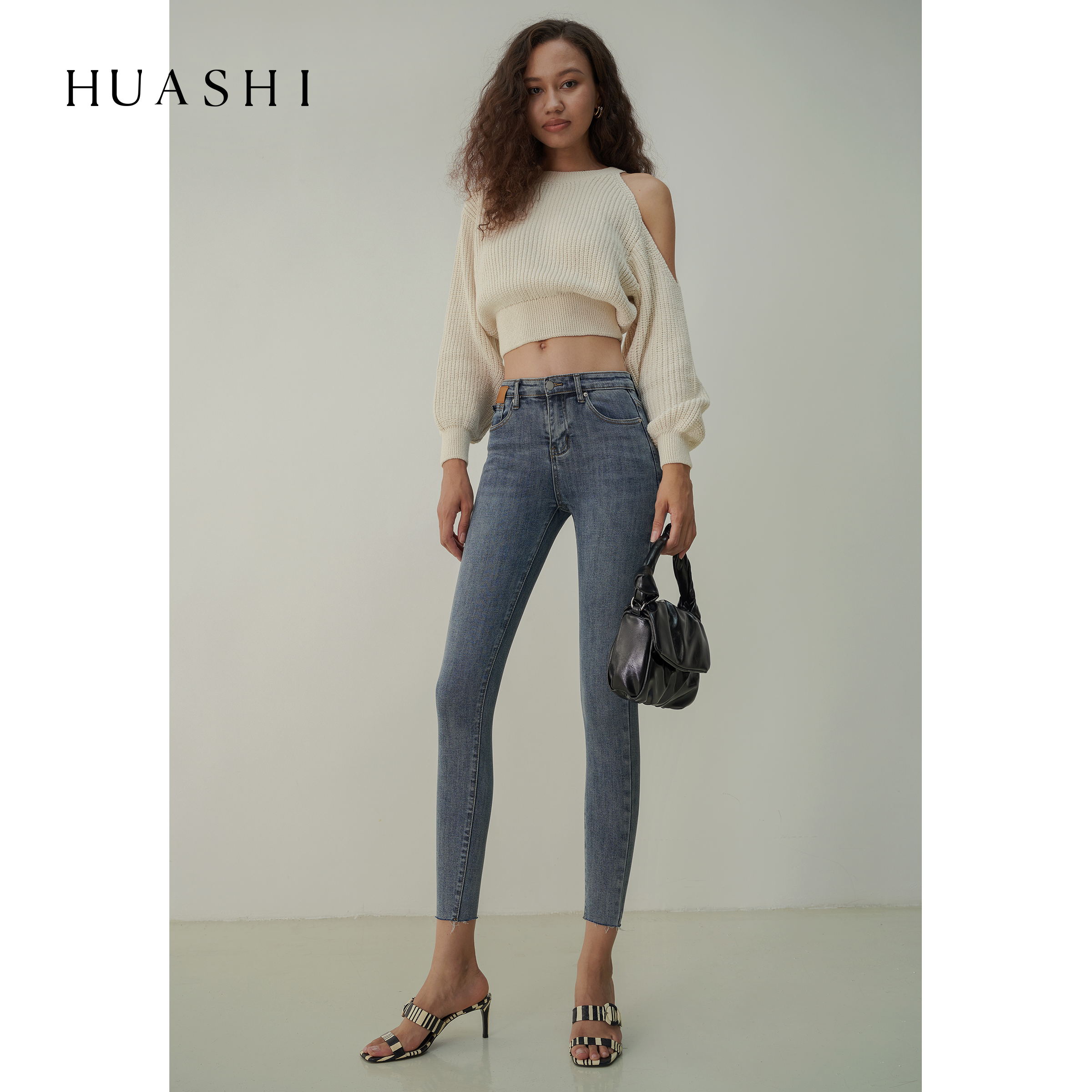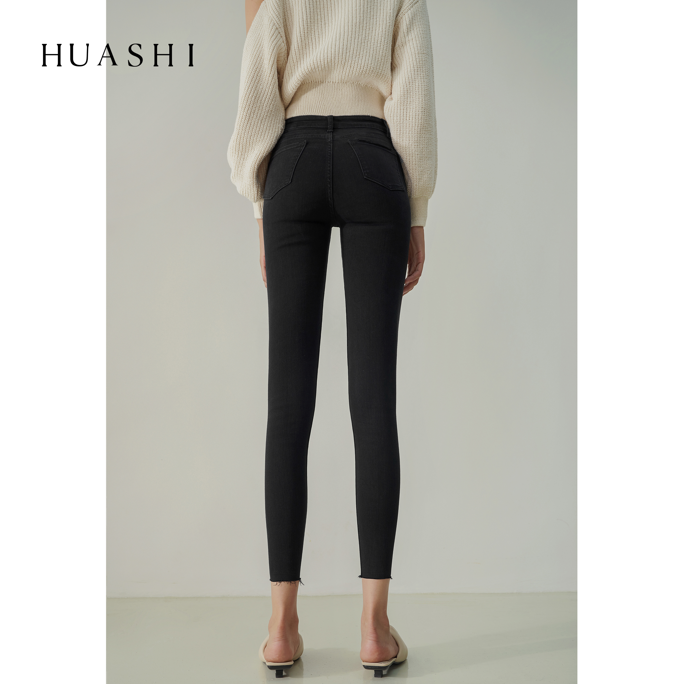 HUASHI high waist stretch skinny jeans women slim slim texture burrs pencil pipe pants Autumn New