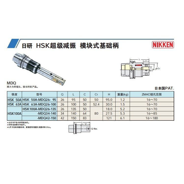 Japan NIKKEN Japan Research HSK 63A-MDQ26-100 HSK super shock absorbing modular base handle