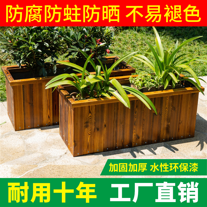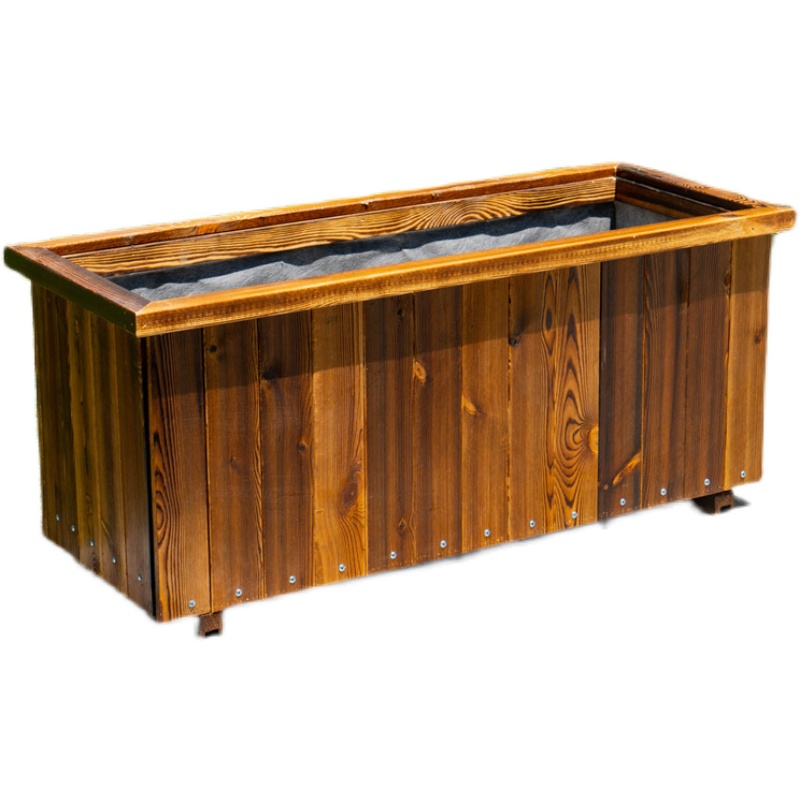 Anti-corrosion wood flower box rectangular carbonized large solid wood flower pot balcony outdoor planting box garden planting box flower trough