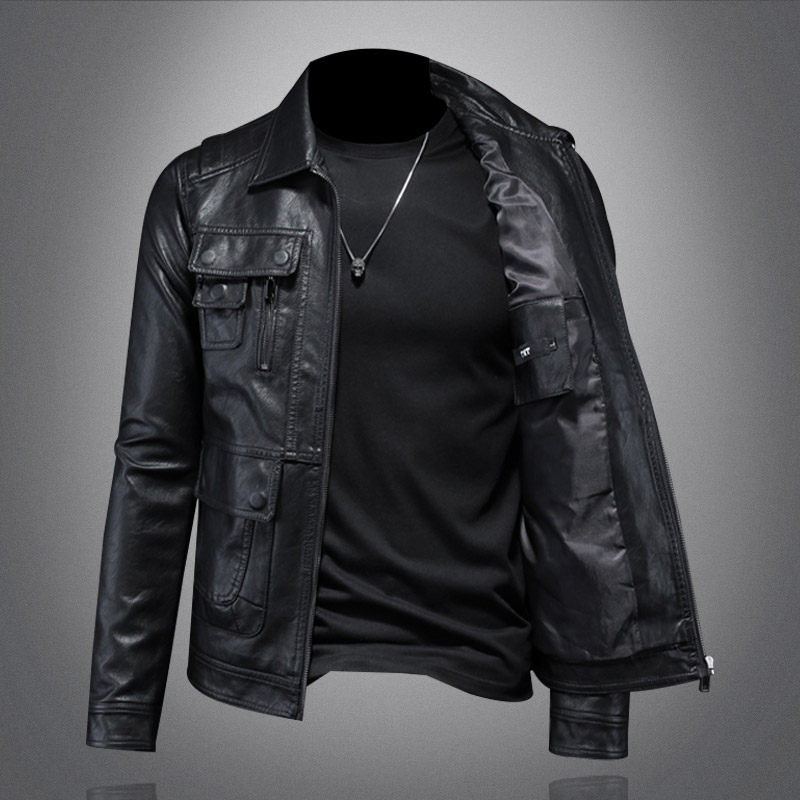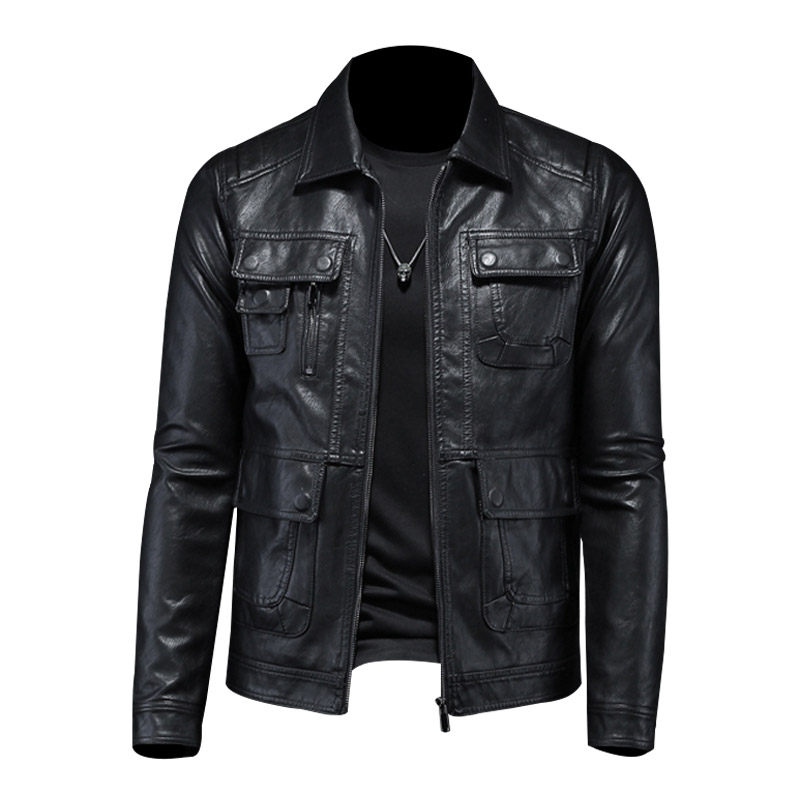 High-end leather jacket men's 2023 spring and autumn new fashion casual retro motorcycle handsome leather jacket