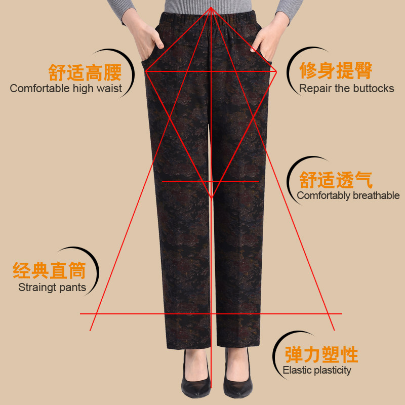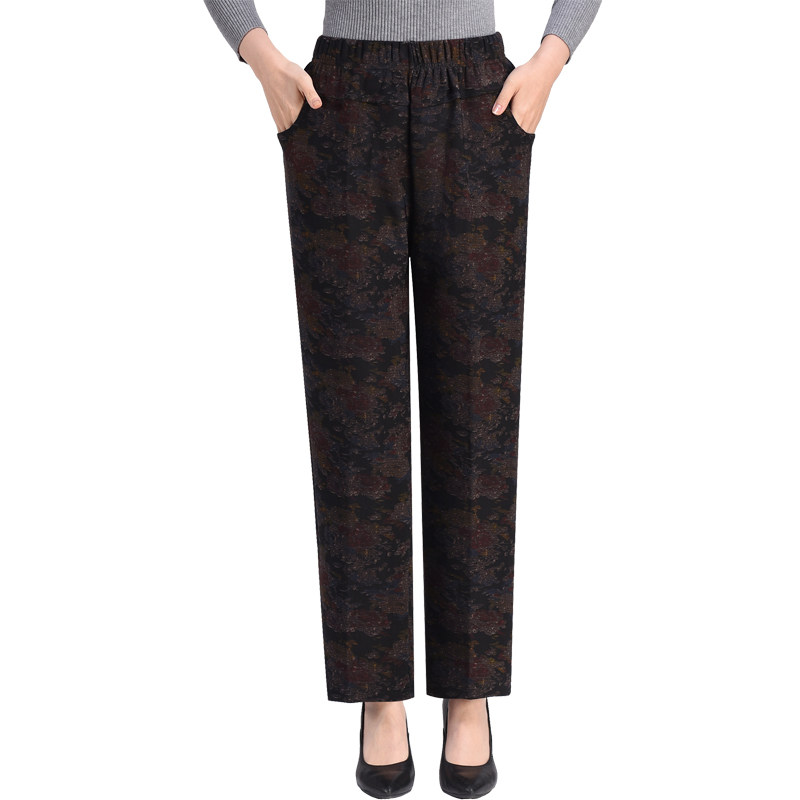 Middle-aged and elderly gush women's pants thickened with large size Grandmother's mother Spring and autumn straight drum high waist pants outside wearing mother-in-law