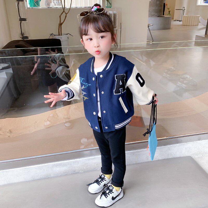 Lashabelle girl's jacket autumn clothing 2021 new foreign Pietynet red female baby baseball clothes for spring and autumn children