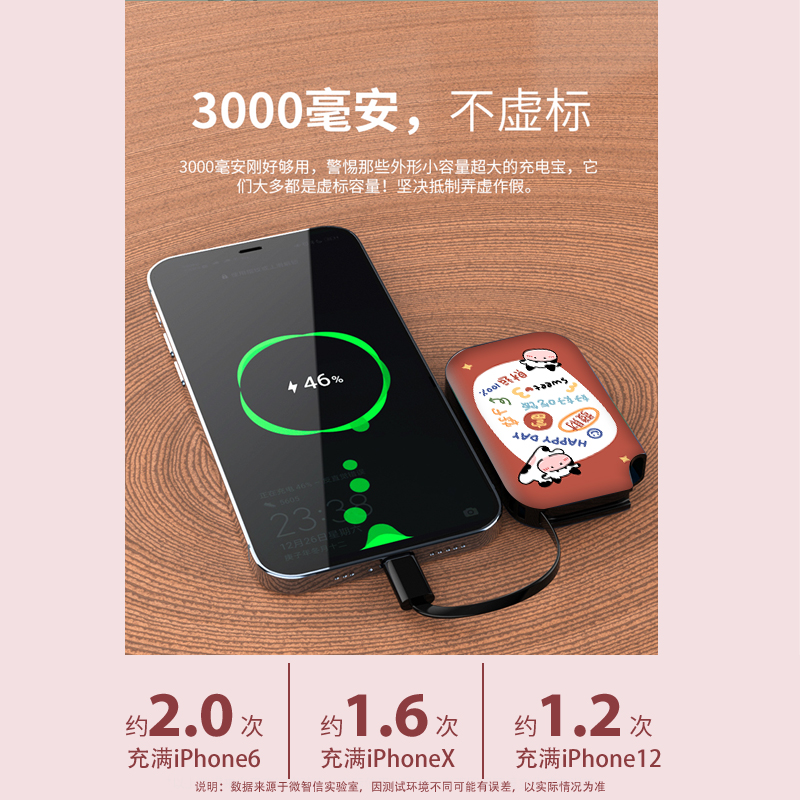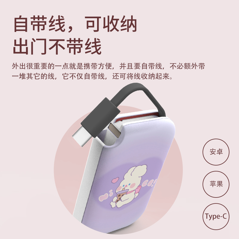 (Supermini bring your own line) Apple private mini mobile charging ultra-thin small portable iphone12 action power suitable for Huawei typeC mobile phone fast charging X capsule custom logo