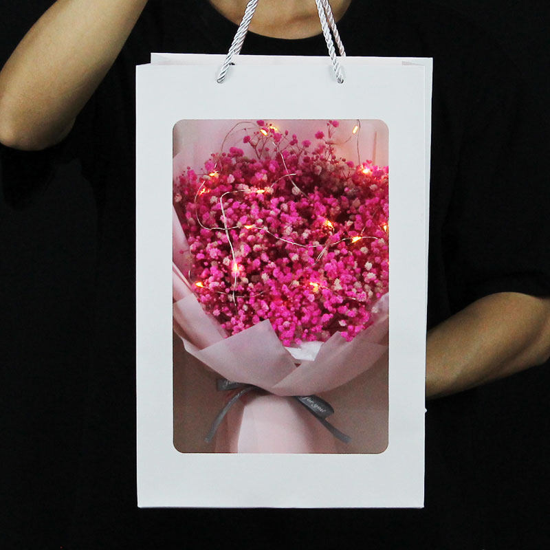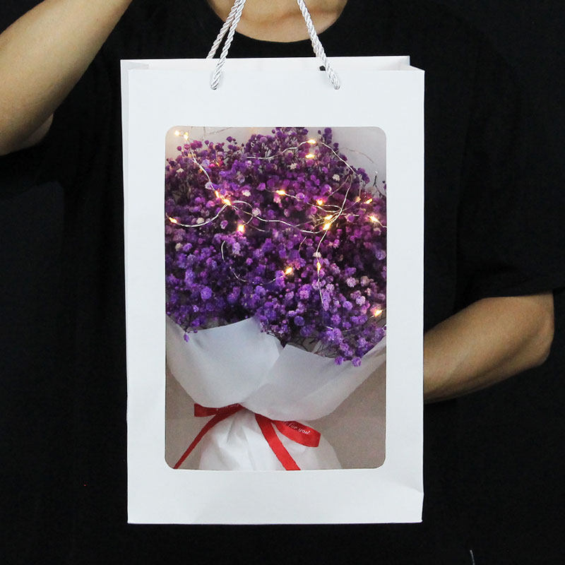 Pink Surface Bouquet Handheld Gift Card Greeting Card Purple Flower Bouquet Handicap Bag Greeting Card Blue Flower Bouquet Lighted with Sky Flower Bag Handheld Bag