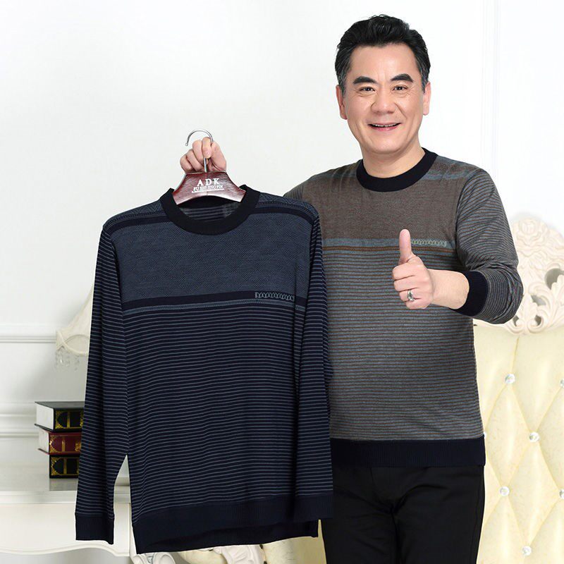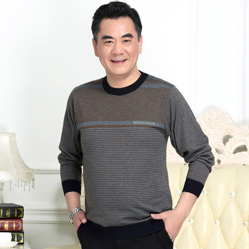 Dad autumn long-sleeved T-shirt round neck thin autumn clothes 50-60 years old men's loose bottoming shirt with real pockets