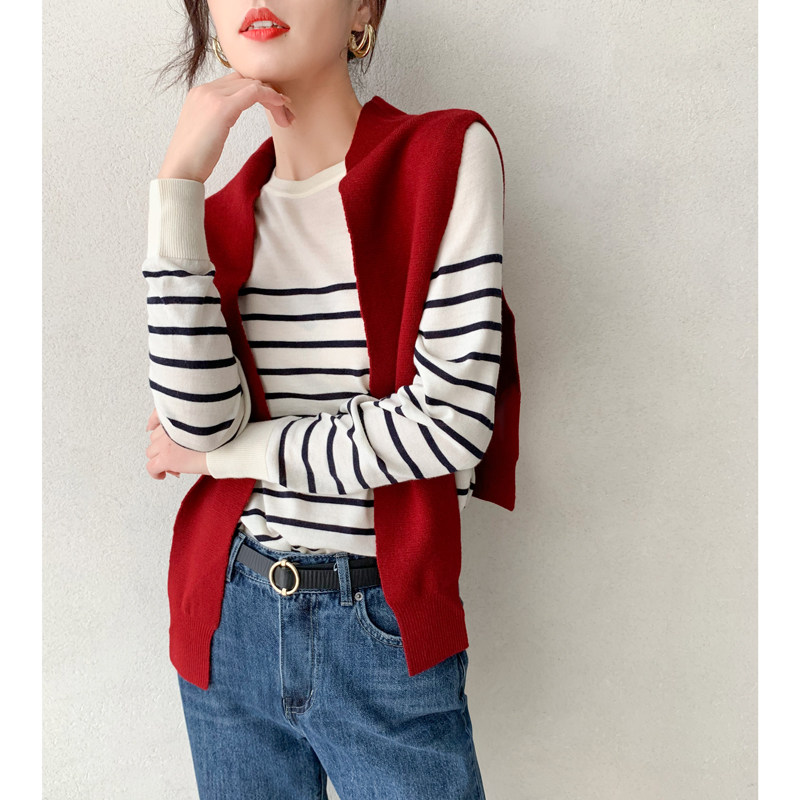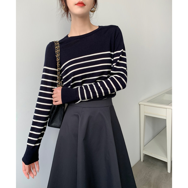 Mars Jiamin's new product New Australian wool close-fitting wear non-tied wool bottoming shirt knit striped T-shirt