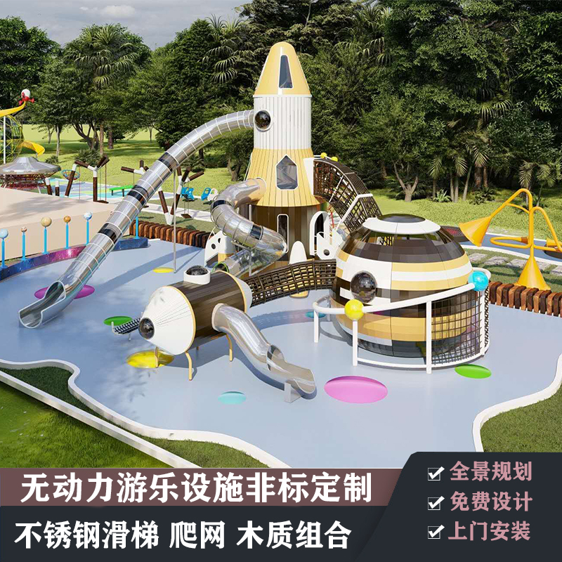 Large outdoor stainless steel slide non-standard outdoor playground scenic area wooden climbing net children's equipment and facilities