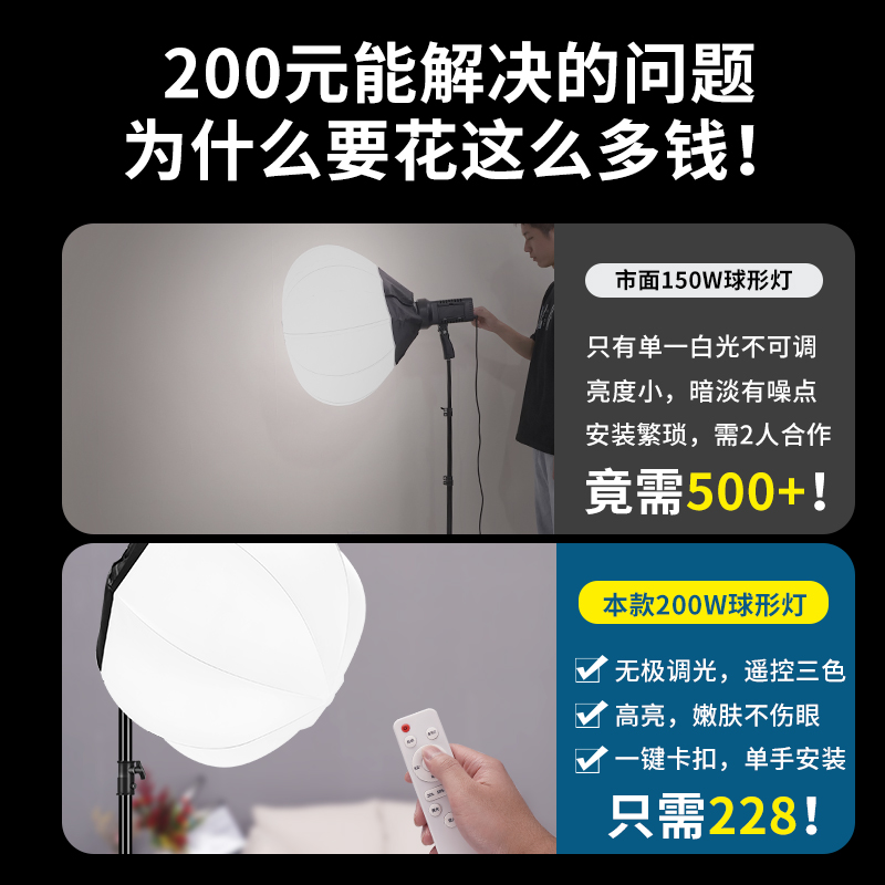 (Send live broadcast frame) 350W live broadcast fill light anchor with beauty rejuvenation spherical led photography light vibrato net red photo indoor special shooting clothing lighting studio soft light ball