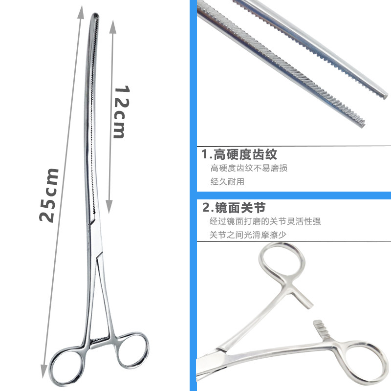 Stainless steel intestinal forceps to stop bleeding pet surgical forceps instrument ear cutting dog ear trimming tool straight head elbow hemostatic forceps