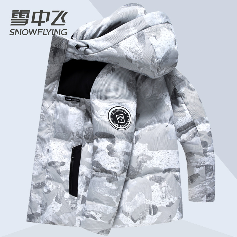 Snow in the Fly 2021 Winter New Camouflage Down Jacket Men's Shorts Thick Hooded Warm Winter Coat
