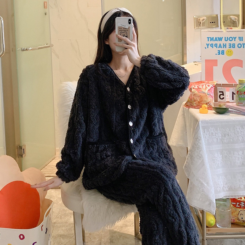 Coral Suede Pajamas Woman 2021 New Autumn Winter Flannel Thicken With Long Sleeves Cardiovert Suit Pink
