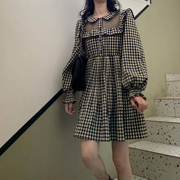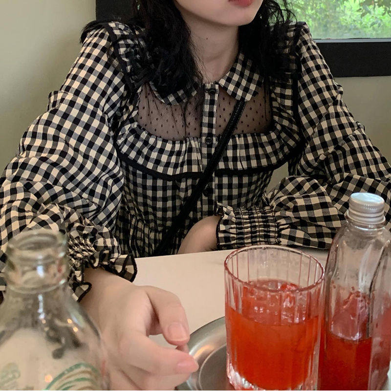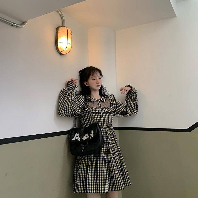Fall Days Department Soft Sister Cute Doll Collar Bubbles long sleeves Agaric Lace cashiered cashew Plaid Fairy