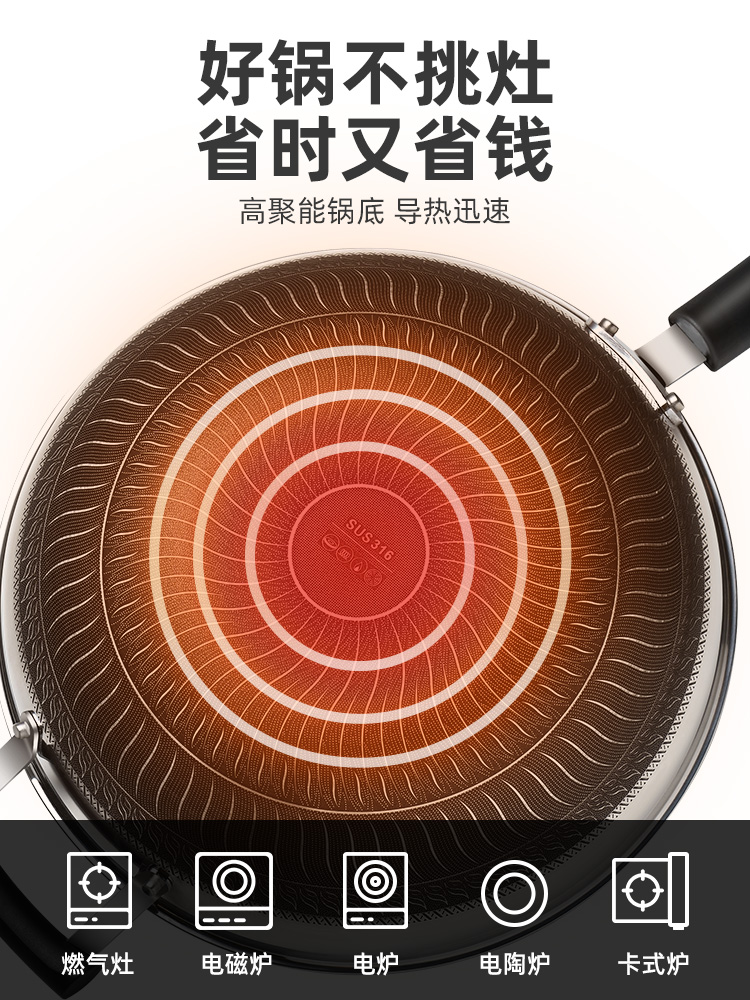 304 stainless steel wok 32cm (for 2-4 people) 304 stainless steel wok with auxiliary ears 34cm (for 3-5 people) 316 stainless steel wok 32c