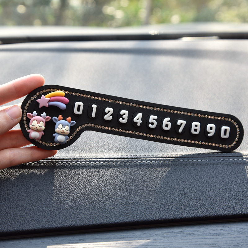 Car temporary parking plate car cute personality cartoon creative car moving car license plate card phone number plate