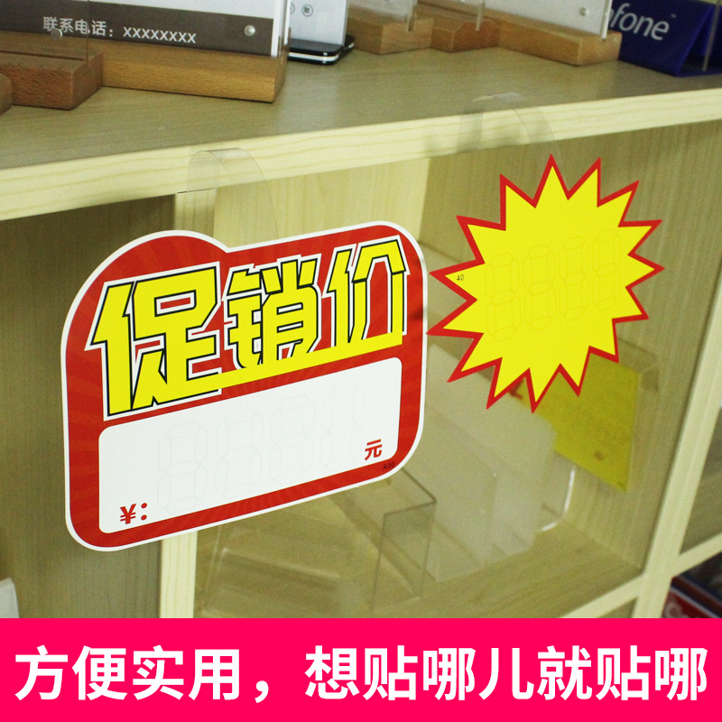 (300 Pieces Loaded) POP Explosion post-hop card 3M transparent adhesive tape Advertising paper PVC spring sheet Toughness Strong Rocking Card stickup Creativity Plastic Film Card Supercity Shelf Label price tag