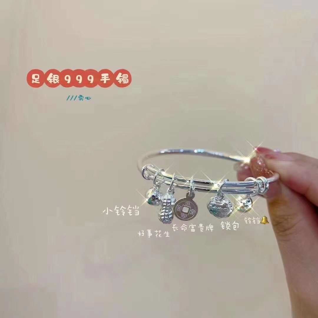 Hong Kong is born pure silver s999 Japan-ROK fashion small crowddesign numismatic peanuts Ruyi lock Five precious bracelet women 100 hitch