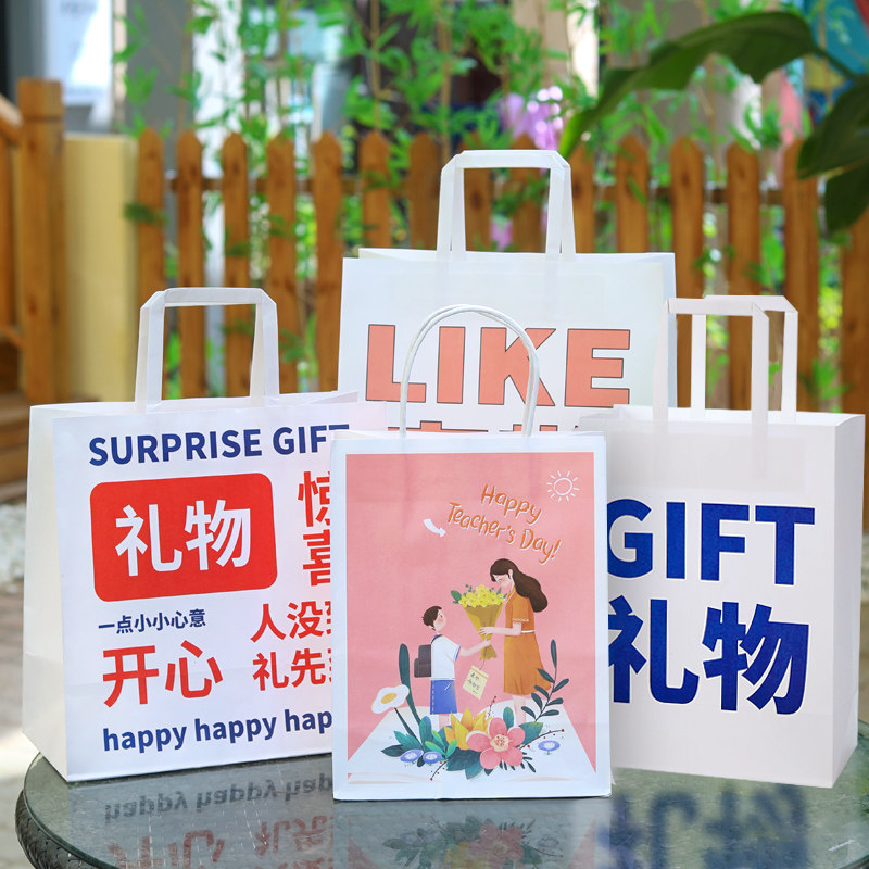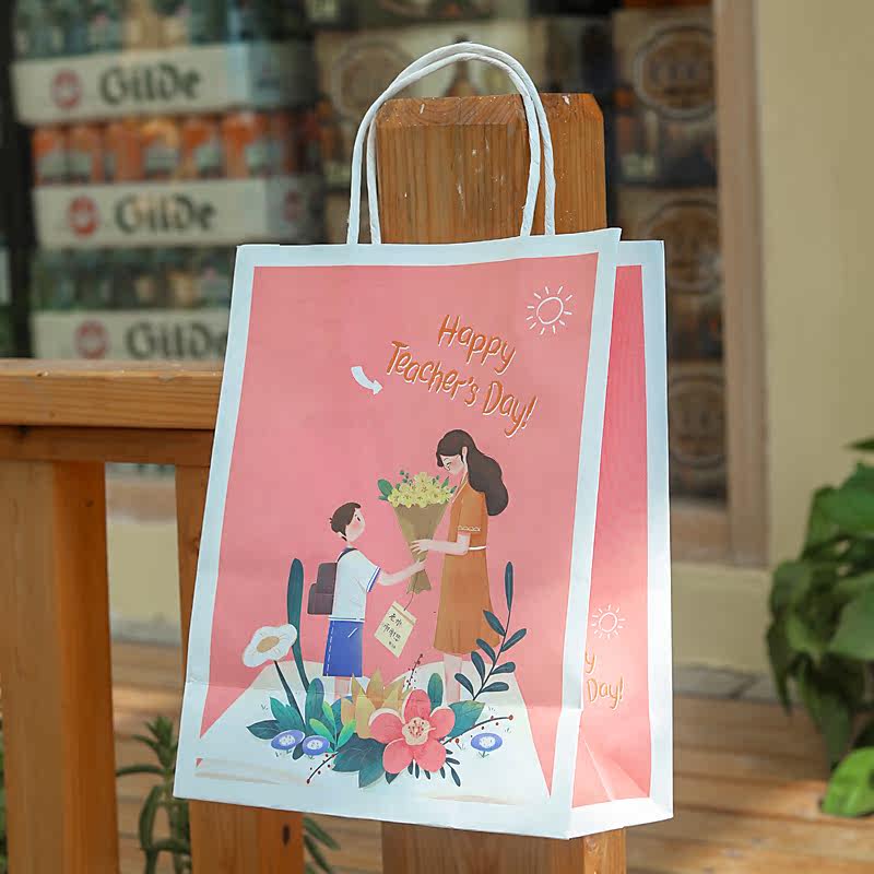 Teacher's Day gift bag tote bag kraft paper bag hand gift bag holiday packaging bag cartoon custom gift bag