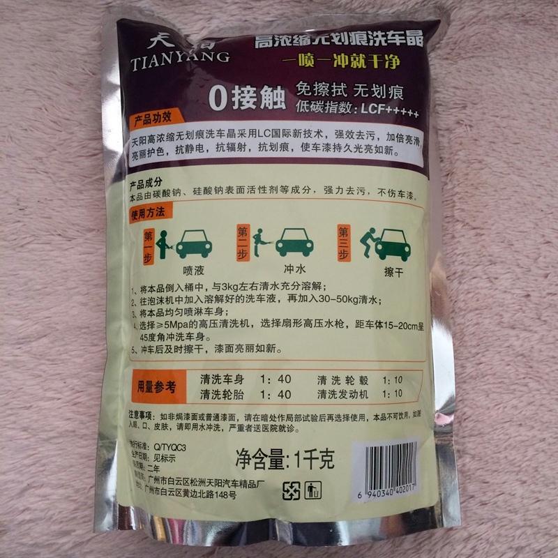 1kg loaded Tianyang free wipe carwash crystal carwash powder carwash fine crystal foam powder foam concentrate to remove the upper light