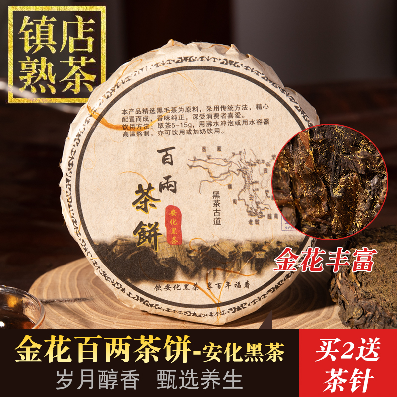 Anhua black tea authentic Hunan black tea 2015 golden flower hundred taels of tea cake tea Anhua black tea thousand taels of tea king 120g