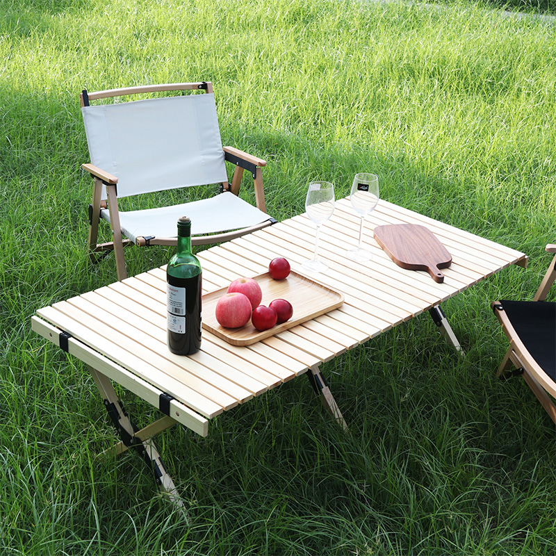 Outdoor Folding Table Portable Self Driving Cruise Simple Camping Picnic Beach Table And Chairs Wild Camping Supplies Solid Wood Egg Roll Table