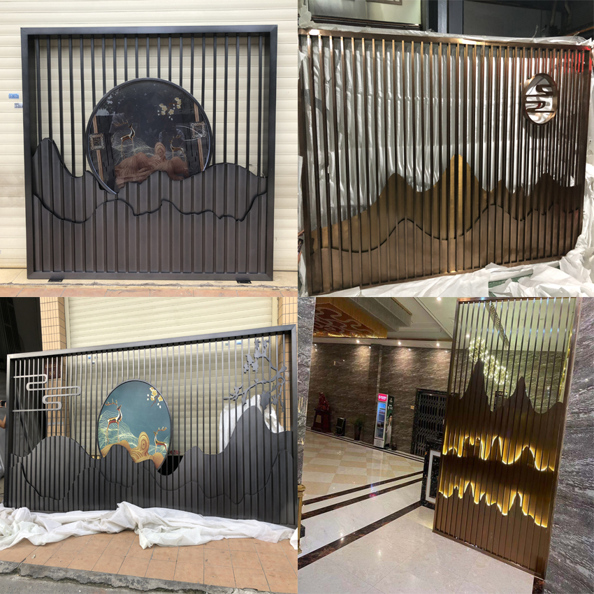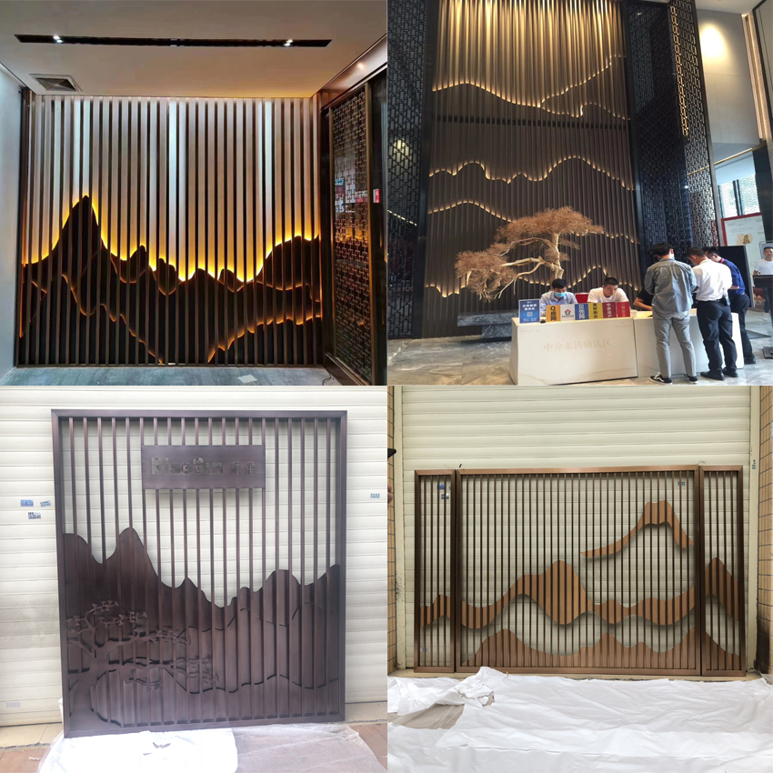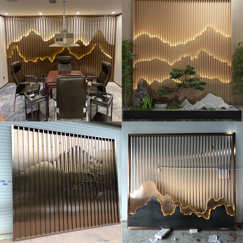 Stainless Steel Screen Partition Custom Fake Mountain Background Wall Courtyard Landscape Painting Titanium Metal Genguan Villa Hotel Decoration-Taobao