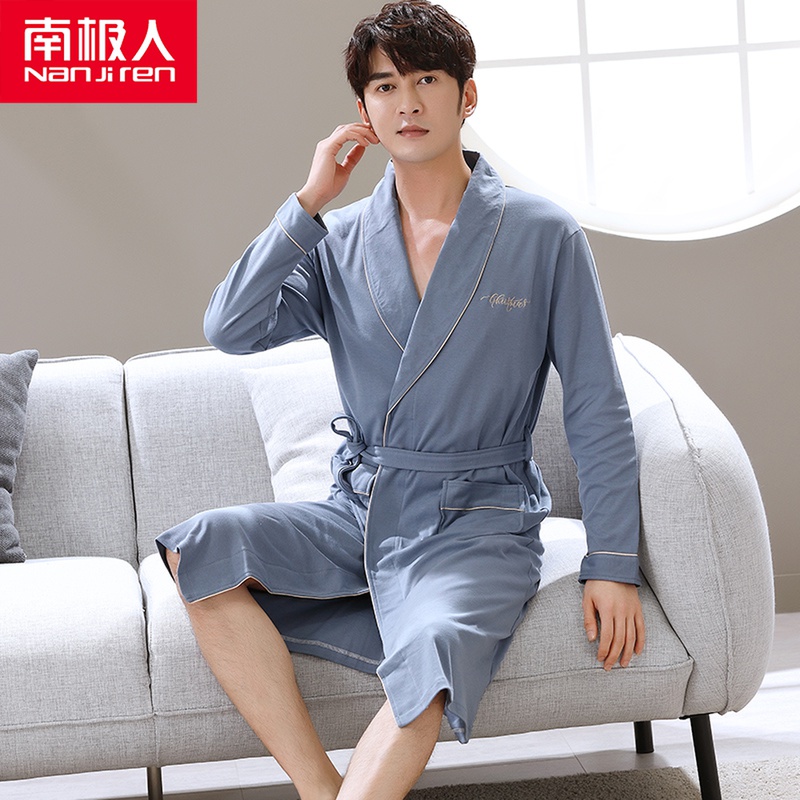 South Pole men's men's sleeping robes Spring autumn season pure cotton long sleeve bathing suit with larger code thin new sleepwear bathrobe