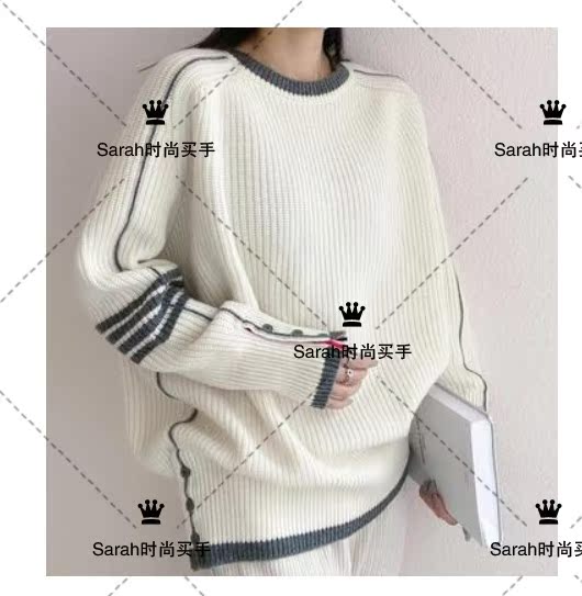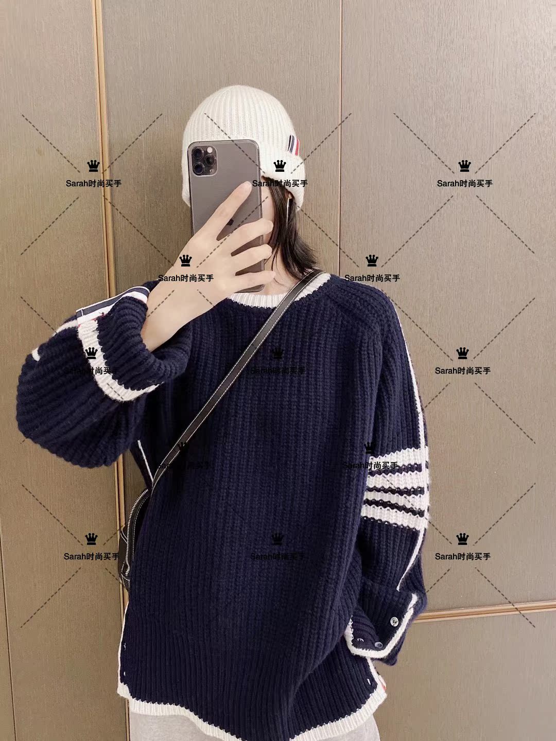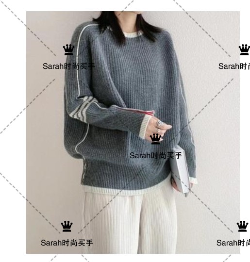 France Thom Brown red sweater TB loose pullover padded round neck wool jersey men and women