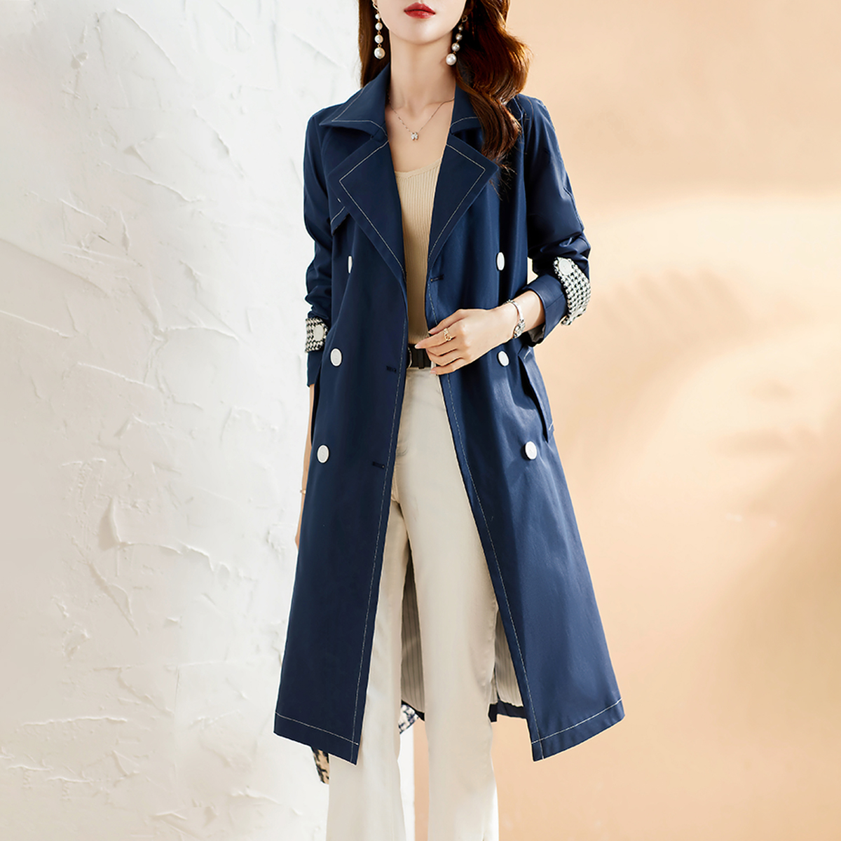 Small sub-wind dress Women's medium long version 2022 Spring new fashion Temperament Cashew double-row buckle jacket big coat girl