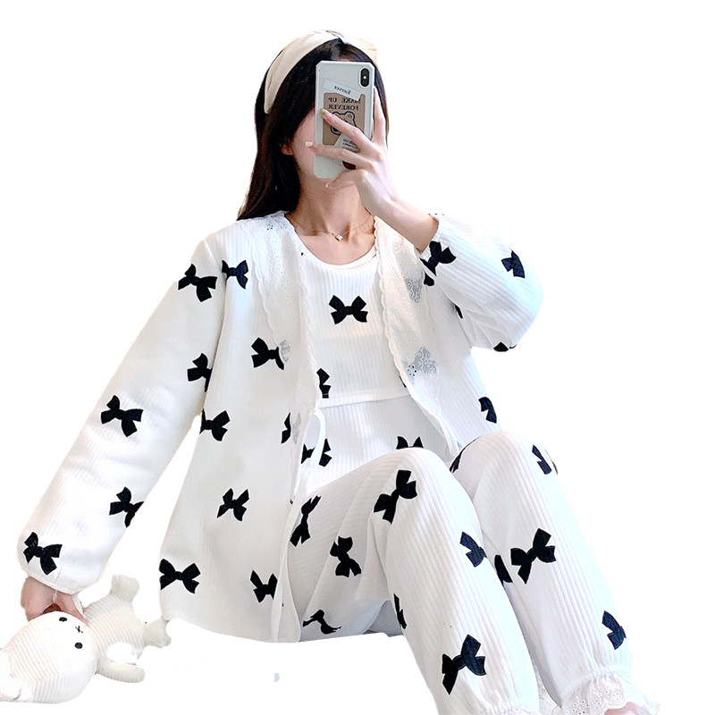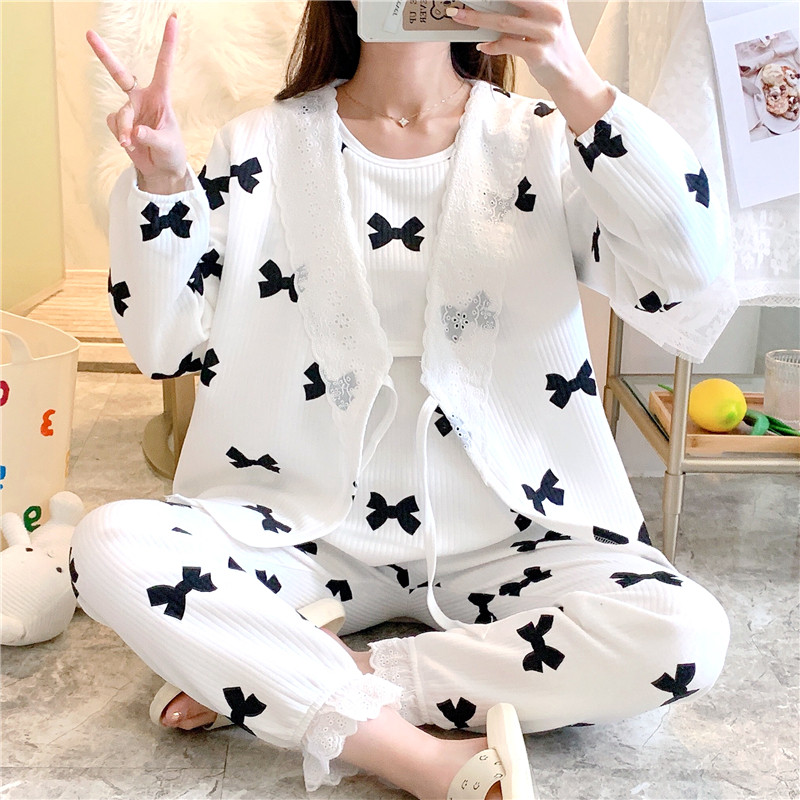 Three-piece confinement clothes air cotton autumn and winter pregnant women pajamas women's spring, autumn and winter cotton postpartum nursing home clothes