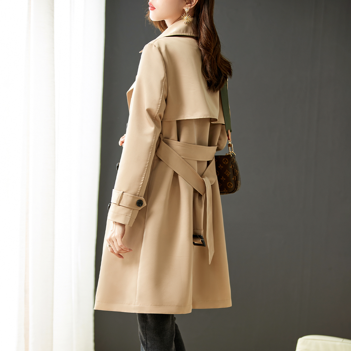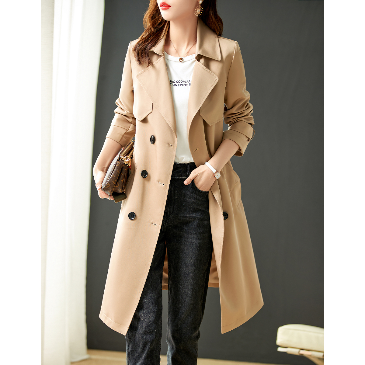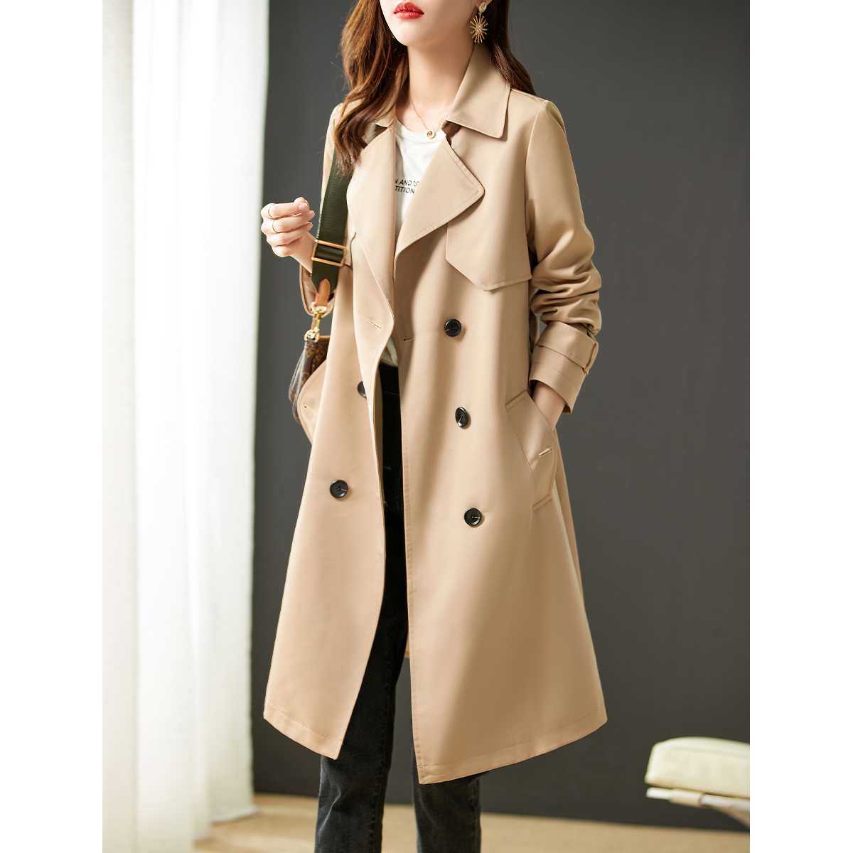 Small sub-wind dress Women's medium long version 2022 Spring new temperament cashew fashion card its color coat big coat girl
