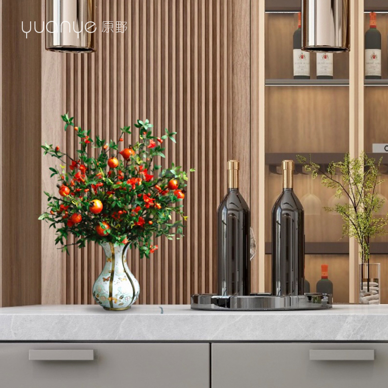 High-end simulation flower red pomegranate rich fruit fake flower Chinese dining table decoration flower living room floral set furnishings