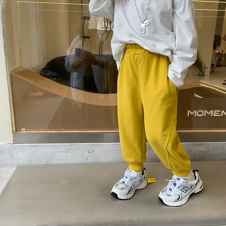 Yi Yummy Boy Pants Autumn Clothing New Pure Color Split Casual Pants Children Loose Straight Drum Baby Bunches Pants