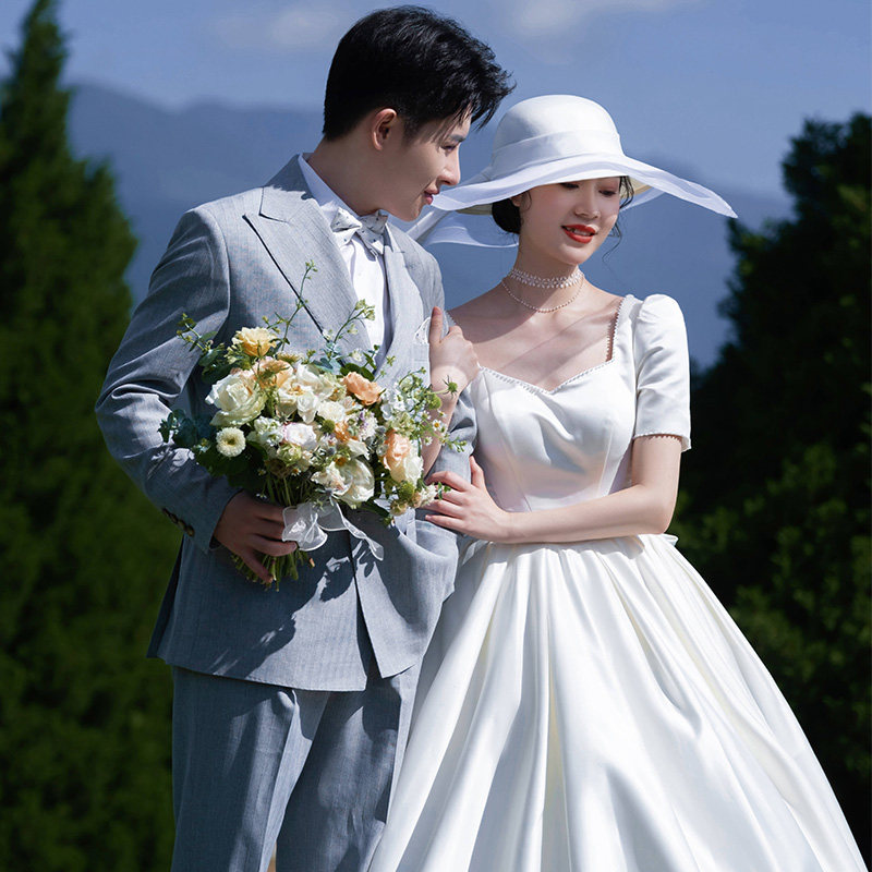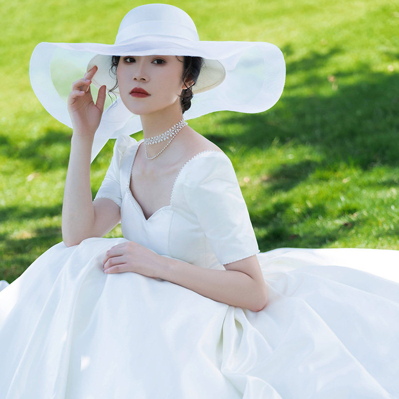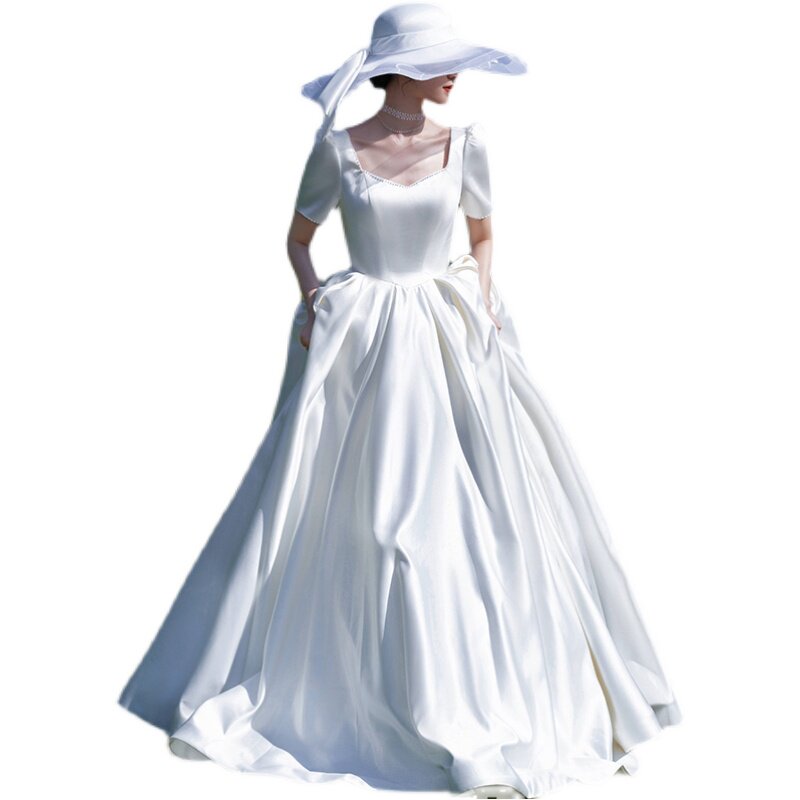 French satin light main wedding dress 2022 new bride Mori style Hepburn style simple court small man go out gauze spring