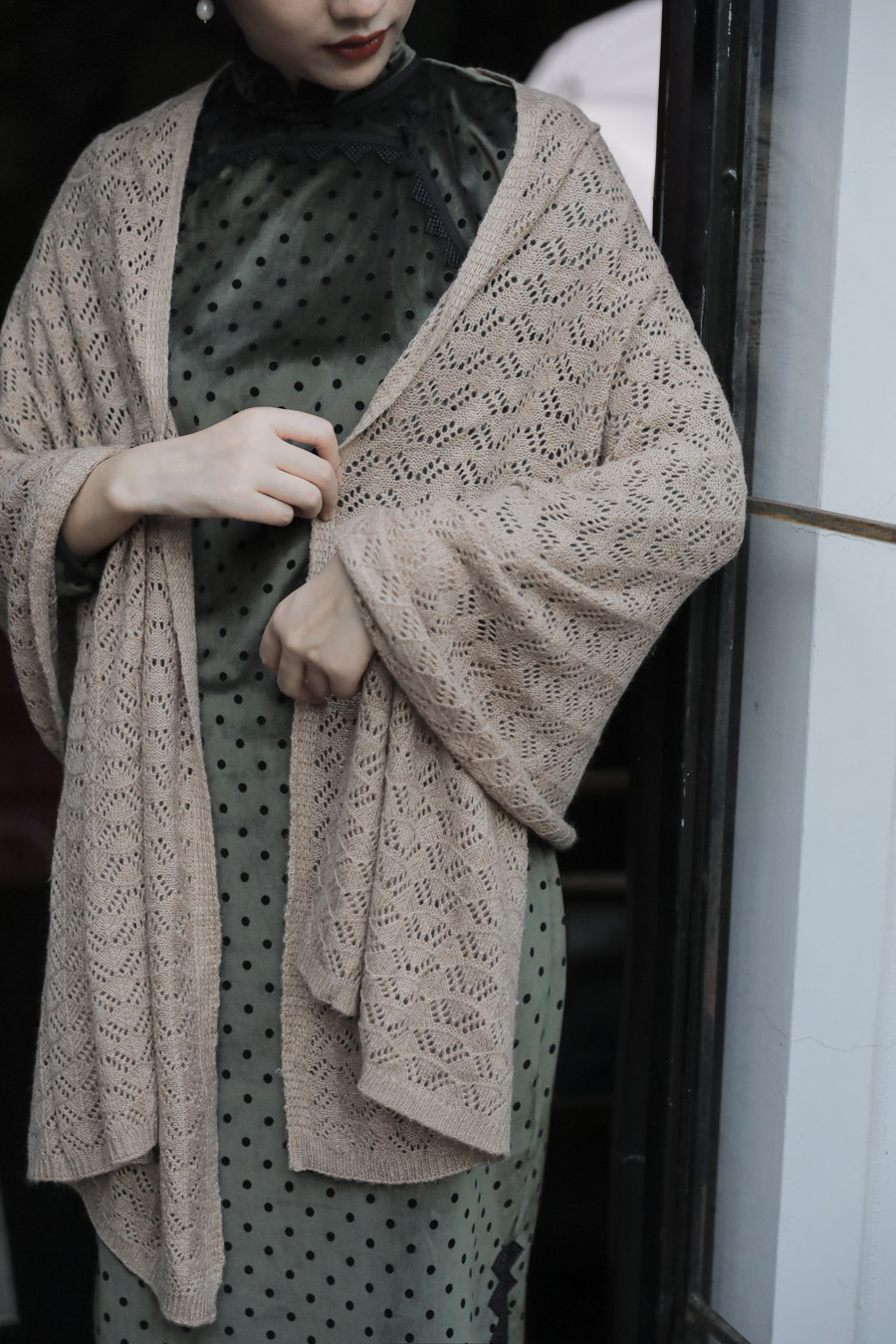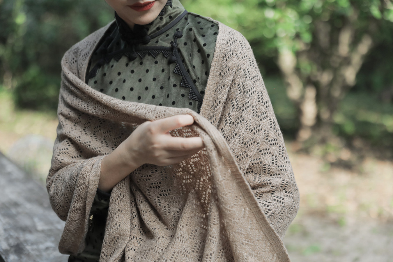 Jasmine Spring Autumn Season Qipao External Hitchhiking Retro Art Hollowed-out Wool Scarves Shawl